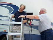 At dinner out, with Linda, her Dad and Brian checking something on the computer