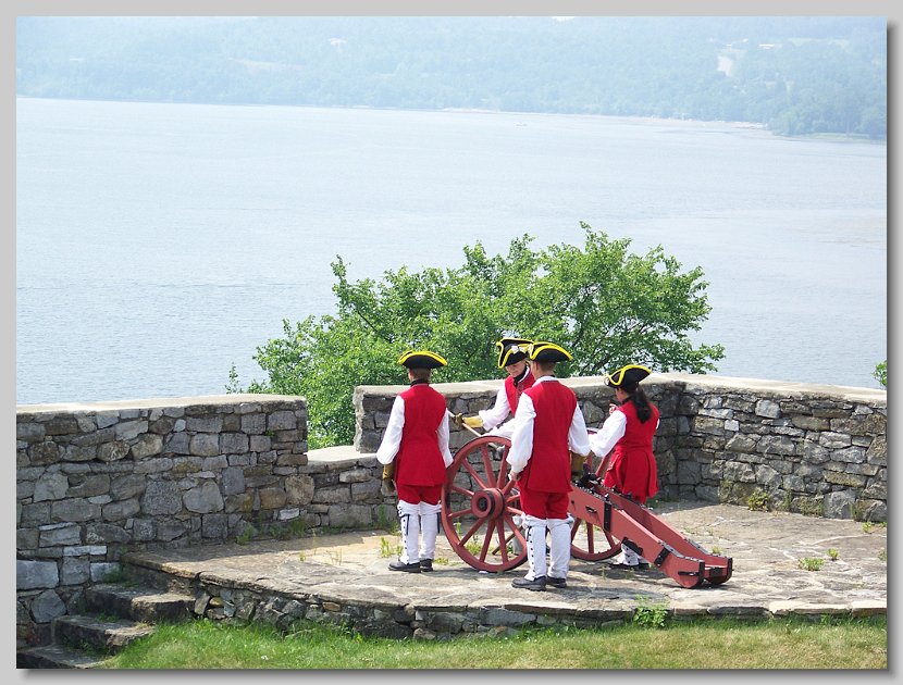 Multi-tasking, the Fife & Drum Corps prepare to demonstrate the cannon