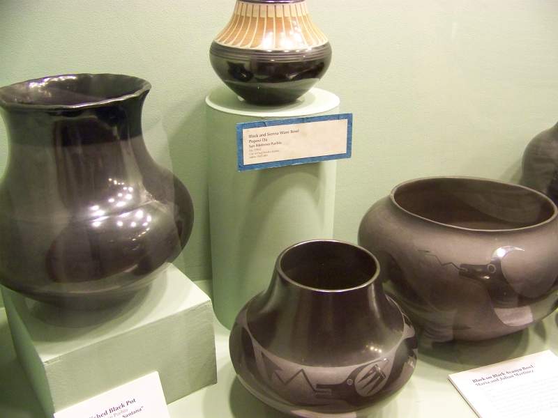 If you follow the Antiques Roadshow, you'll be familiar with the black-on-black pottery of native potter Maria Martinez. The Millicent Rogers Museum houses perhaps the largest collection of Maria pottery, much of it acquired when Maria's family donated an accumulation of pottery and memorabilia after her death. Maria made and sold her pots for around a dollar each; today they bring many thousands of dollars each.